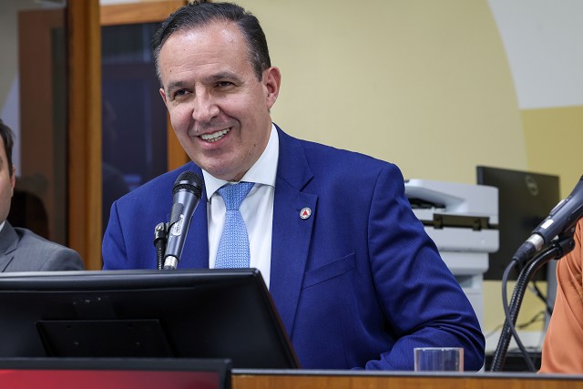Lê mensagem do presidente da Assembleia Legislativa, Tadeu Leite, em