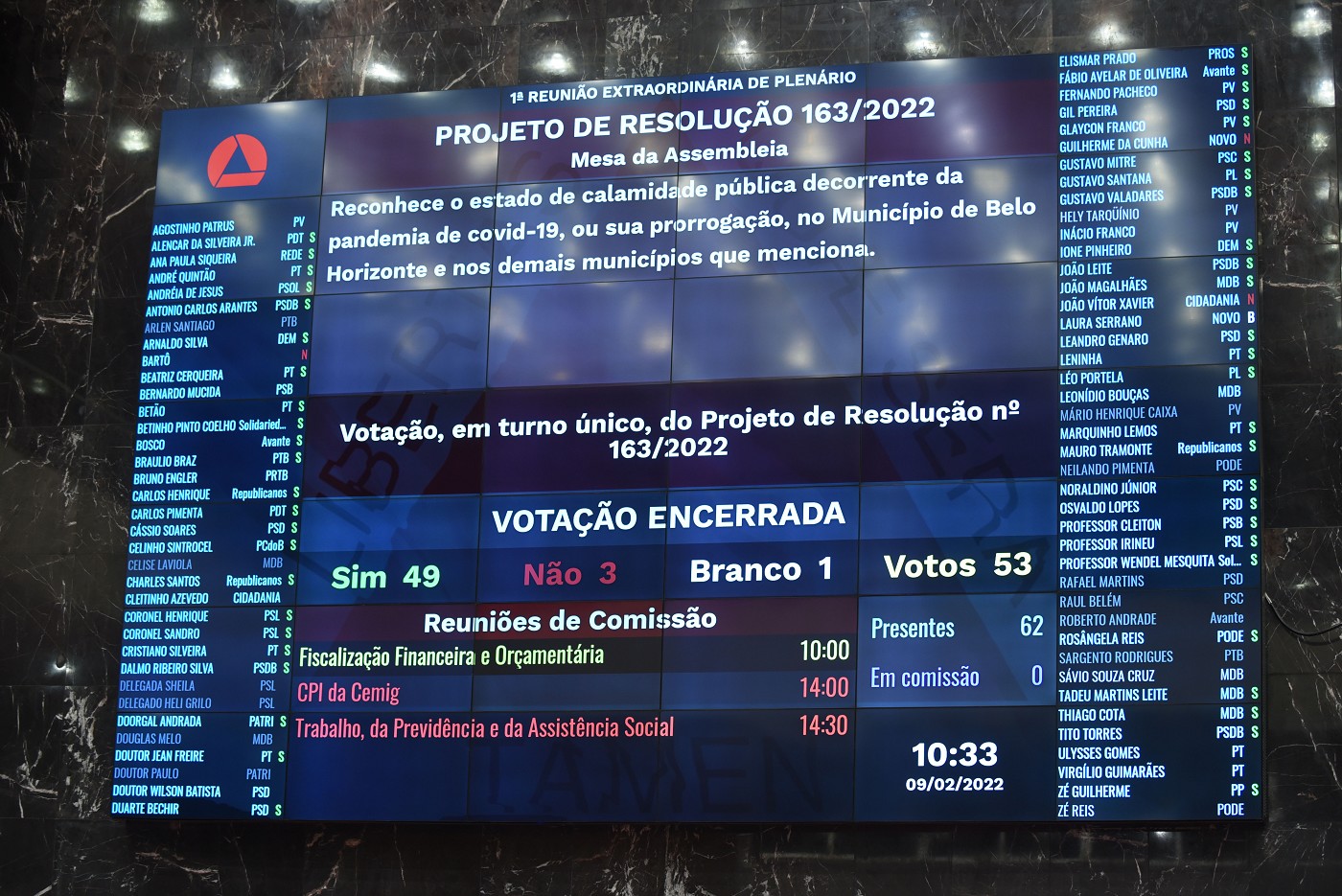 Reunião Extraordinária - manhã - análise de proposições