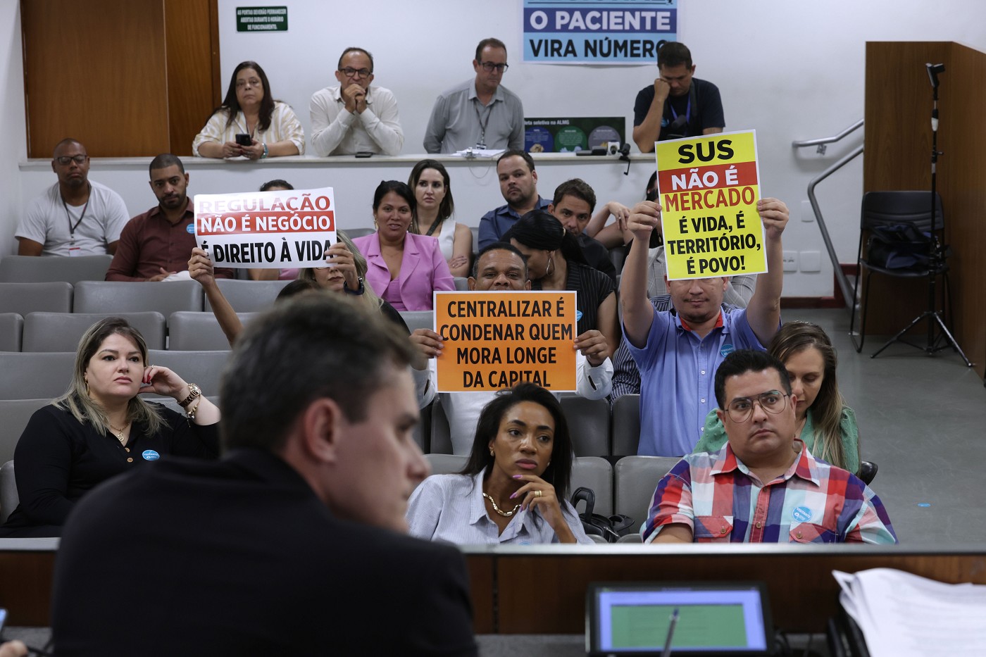 Núbia Roberta Dias, diretora do Sindicato Único dos Trabalhadores da Saúde de Minas Gerais, rebateu parte da fala do gestor, dizendo que Minas Gerais já ganhou vários prêmios de regulação. “Somos bons nisso. Santa Catarina e a Unimed copiaram nosso sistema de regulação”, informou ela, apontando para o risco de dados sensíveis do estado caírem nas mãos da iniciativa privada.