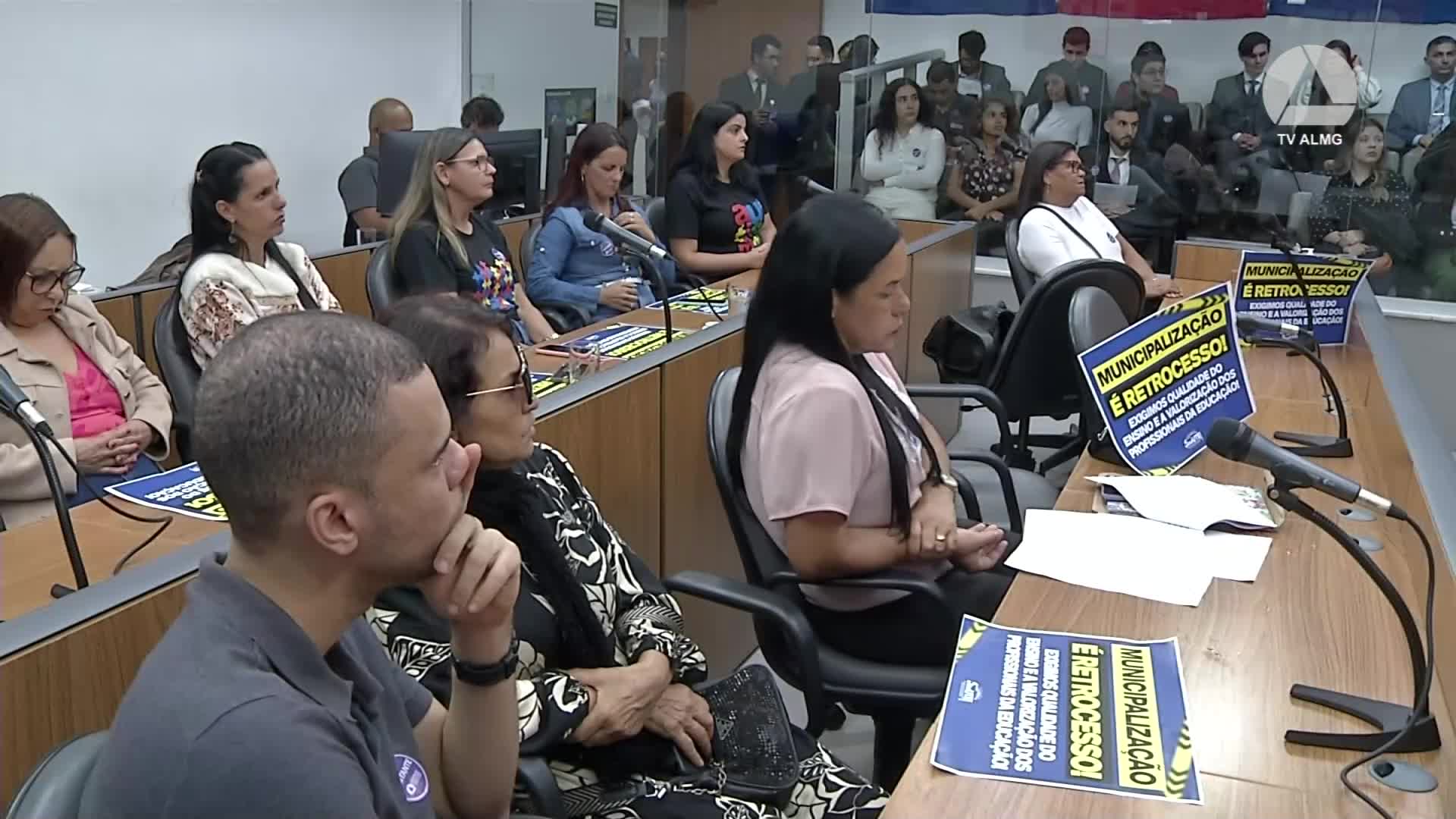 Em audiência pública, servidores da Escola Estadual Clélia Bernardes, em Sericita, Zona da Mata, den...